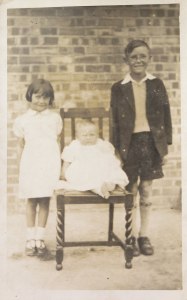 Elsie and Bill had three children, all of whom kept in touch with my Grandmother and it has only been in very recent years that we have lost touch with one of the two remaining cousins. The eldest child was a boy called Ron. Incredibly tall and with, as my Grandmother always said Matthews features. The little girl standing is Mollie and the baby is Janet. So this photo dates from circa 1937-1938.