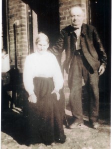 The photograph is of my Maternal Great Great Grandparents, Henry Harris (1843 – 1929) and Caroline Harris nee Ellis (1844 -1935). The couple had married on 3rd December 1864 at Puttenham Surrey. This photograph was taken on the occasion of their 60th Wedding Anniversary in 1924 and was taken at Manor Farm at Wanborough Surrey.
