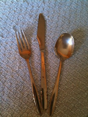 I was rooting around in the cutlery drawer a week or so ago and spotted this set. This is the first set of cutlery I was bought, so it is at least 35 years old. It looks ok, actually I have recently used it for lunch at work!