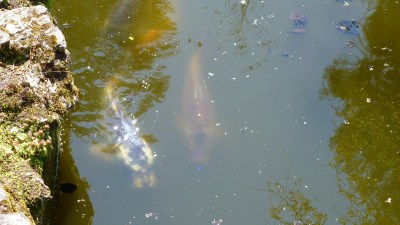 We walked further round and spotted a super water garden with waterfall which was the home to some rather curious Coy Carp.