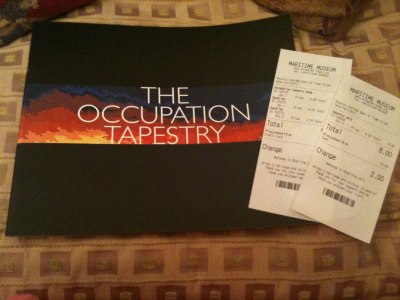 The tapestry is outstanding and well worth a visit. I purchased the guide book and a complete set of postcards, which shows each of the tapestry panels. The postcards and guidebook are available from the shop in the Maritime Museum.