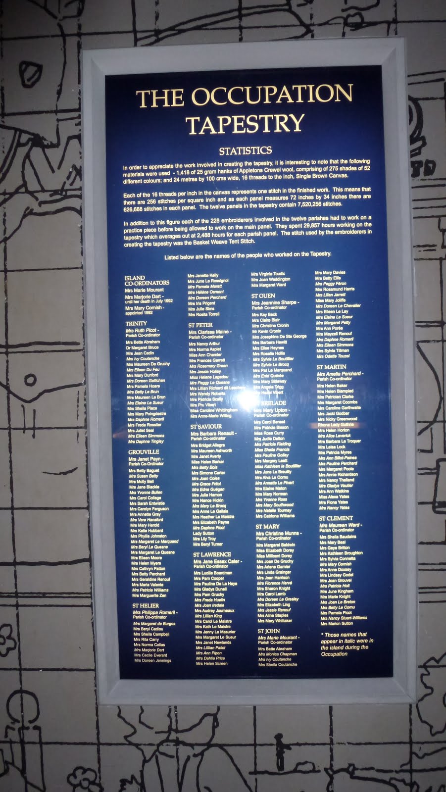 Towards the end of the exhibition and tapestry is a panel naming all those who took part in creating this wonderful creation. The panel also shows those who were involved in making the tapestry and were on Jersey at the time of the Occupation.