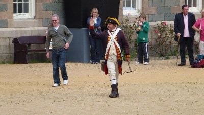 Outside in the parade ground, one of the Jersey Heritage Volunteers was dressed in dress of the time. He was, like the medical chap, very knowledgeable and enthusiastic about the subject matter. He gathered a group of visitors and taught them how to march and included the children present as boy soldiers!