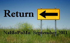 Taking part in NaBloPoMo for Septmber. NaBloPoMo stands for National Blog Posting Month. The Goal is for participants to write a post each day for a month. To help inspire bloggers, NaBloPoMo allocates a theme for each month. The theme for September is Return.
