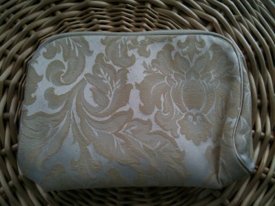 A lovely cream damask make up bag which I bought in January in 1997 whilst in Australia at a town called Beechworth. What was so lovely about the day was the day we spent there. There was five of us, myself and hubby, my cousin and his wife and sister. We had a lovely lunch and wandered around the shops including some lovely antique shops, listening to my cousins reminisce of their childhood and things they remembered.