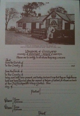 I have visited Gretna Green a number of times and the modern shopping complex that is nearby. At the shop close by to the marriage chapel you can purchase these blank cards. The first card is around 10 years old. You can still get married at Gretna, my Nephew did a few years ago.