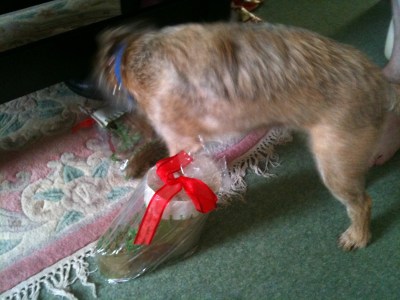 Anyway, they were edible and Alf on Christmas morning was quick to investigate, after having some assistance with the wrapping!