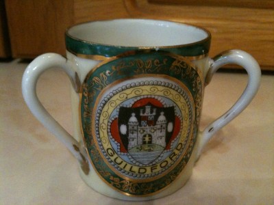 This little beauty is a fairly recent purchased to accompany my Guildford and District collection. This first photograph shows the front of the cup complete with the coat of arms for my home town. Guildford is in Surrey England.