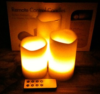 The remote control set of candles is a rather simple idea and I think positively brilliant! They arrived in a well protected box with the remote control (obviously!)