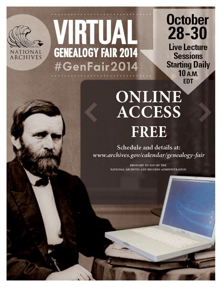 So gather your grandmother’s photos, pop some popcorn, and check out the Virtual Genealogy Fair schedule at www.archives.gov/calendar/genealogy-fair and tune in starting at 10 a.m. EDT next week!”