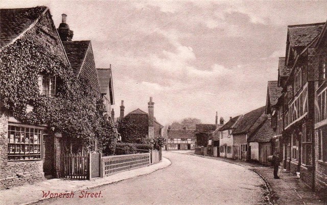 This is one of my favourite cards of Wonersh. My several times Great Grandfather, John Butcher (1795 – 1877) inherited one of the cottages on the right hand side.