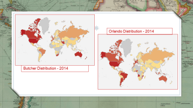 This shows the distribution of the surnames, Butcher and Orlando for 2014, which is the only year where there is a comparison between the two surnames.