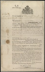 Illegitimacy – In past times there was a formal process to hold father’s to account for their children who were born to women that they were not married too. In this example, Hannah Butcher of the parish of Fakenham Magna in Suffolk has cited the father of her illegitimate child, to be John Howes, gardener of the parish, and as such Howes was required to be apprehended. The Bastardy Bond was dated December 1805. The child was baptised John Howes Butcher. After the baptism, John Howes Butcher dropped the use of Howes and continued to be known as John Butcher. Both the surnames of Butcher and Howes are registered with the Guild of One-Name Studies, Butcher by myself and Howes by Paul Howes. You can view the website for the Howes study HERE.