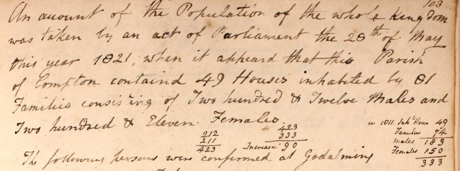 As another Census dawned, the information of the 1821 Census was added to the parish registers for Compton.
