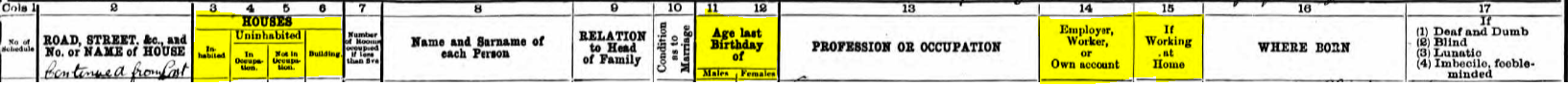The 1901 Census had expanded in terms of the data it sought, the new data is marked in yellow.