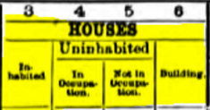 The first set of new questions, related to the building and whether the building was inhabited, was uninhabited yet occupied, or not occupied. The last option is indicating that the building is quite simply that, a building, perhaps a barn or similar. The option of uninhabited yet occupied could be temporary accommodation or perhaps squatters. Also, captured on the Census was the number of rooms at the property, if less than five.