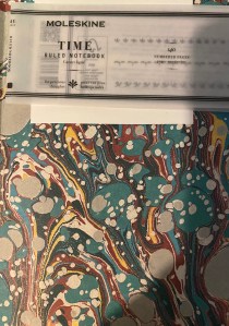 This is standard Moleskine size, 21 x 13 released in 2019 or so and in limited numbers. This notebook boasts a contents page and page numbers. The inside page has wonderful marbling.