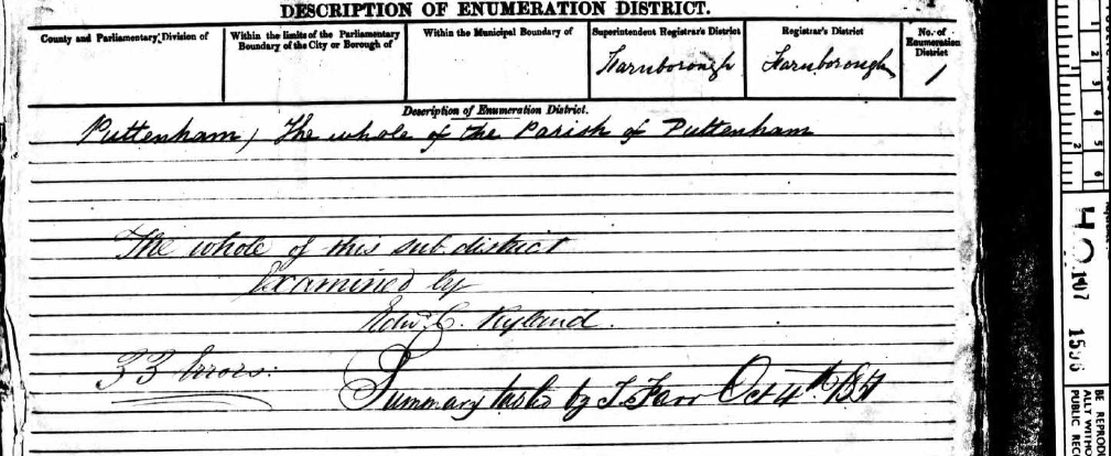 The first change is the family have left Puttenham, they have moved across the Hogs Back (A31) to Wanborough, a distance of just a few miles. The descriptive page is one of the best we have seen since this series began.